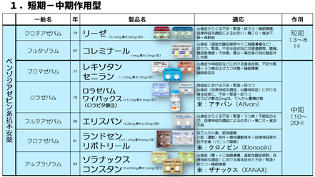 現在、不眠症の治療に使われる睡眠薬は主な作用から
